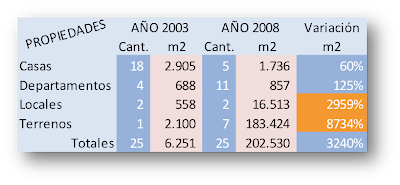 La superficie de Terrenos se incrementó 87 veces entre 2003 y 2008.